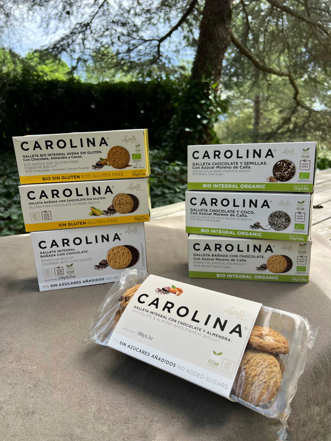 Todas las Carolina están elaboradas con harina 100% integral, y las encontrarás en variedades sin azúcares añadidos, sin gluten (aptas para celíacos) y BIO con más del 99% de ingredientes naturales, con un sabor que sorprende
